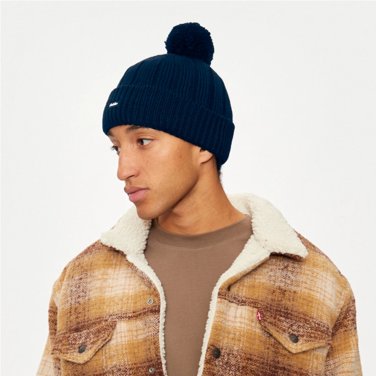 - Seamless knit with fine cuff and pompon